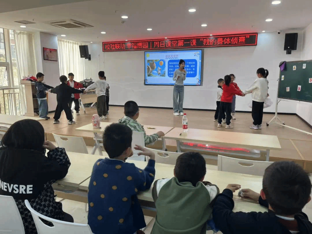 授课过程中,一系列创意十足的游戏让孩子们沉浸其中。“超级变变变”带来新奇体验,孩子们充分发挥想象力,用灵动的身体变幻出云朵的轻柔、树干的挺拔、太阳的炽热,欢声笑语回荡在教室。“心跳小游戏”中,孩子们屏气敛息,侧耳倾听,踊跃猜测播放的心跳音频对应的场景,还惟妙惟肖地模仿心跳节奏,感受生命的律动。“身体侦察”环节,志愿者们说出身体部位,如“膝盖”,小朋友们便迅速找出含有对应部位的图片,这一游戏极大地考验了他们的观察力和反应速度。