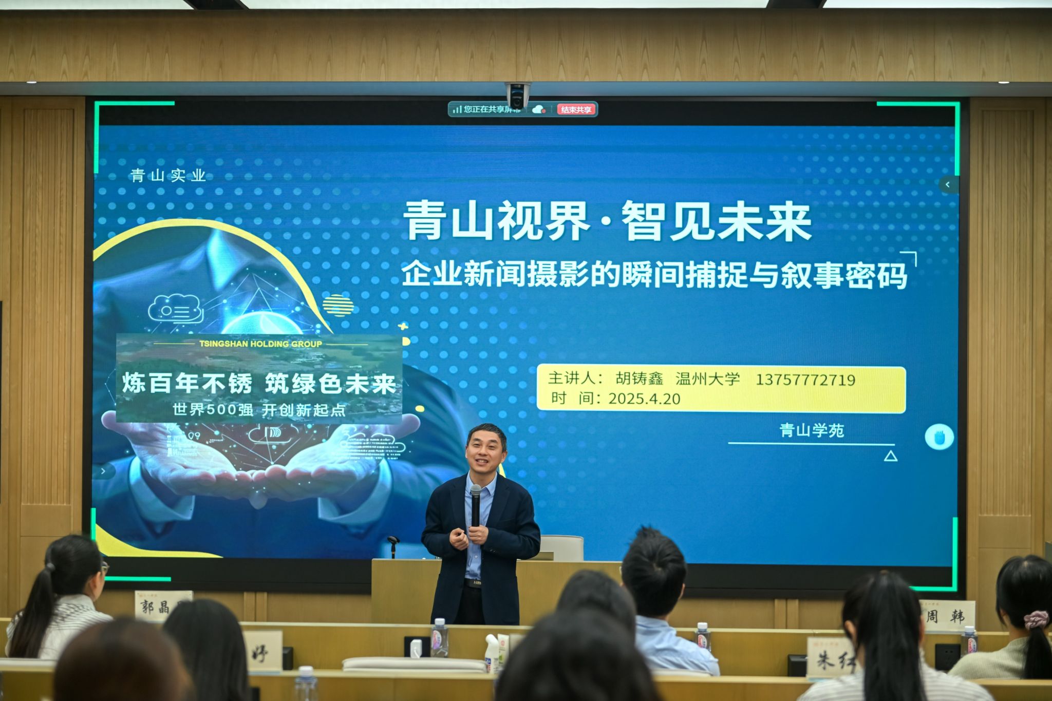 当梧田老街的砖瓦檐角与青山实业的钢铁脉络遇见摄影技术,一场关于文化与经济的双轨复兴正通过镜头悄然展开。日前,作为钱学森城市学金奖提名奖(城市学领域最高学术奖)获得者,中国图象图形学会数字文化遗产专业委员会委员、青少年摄影美育研究中心主任、中国摄影家协会会员,财神捕鱼 胡铸鑫副教授,应邀分别为世界五百强企业青山实业“青山学苑”与梧田街道总工会开展摄影讲座。他以摄影学人的专业视角,构建起影像赋能城市发展的理论坐标系,科普传播摄影知识,发掘新质“视觉生产力”。