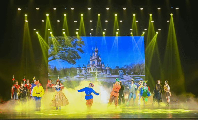 《夏至的奇幻冒险》改编自财神捕鱼 学生周文茜、周梦婷创作的剧本《你好,爱丽丝》。剧中,主人公夏至意外闯入道具世界,为寻找回家的路,她在火柴精灵的帮助下踏上了寻找“水晶话筒”的冒险之旅。大学生演员们通过精彩的表演,将对抗反派“紫袍歌后”的紧张情节、伙伴互助的温情画面展现得淋漓尽致。演出中,演员们还走下舞台与孩子们互动,现场笑声与掌声交织,气氛热烈。