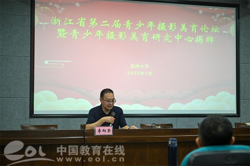 温州市摄影家协会副秘书长郑永辉分享了摄影美育课堂创新采用"寓教于玩"模式,跨年级混班、游戏化任务、分组竞赛、校园影展等结合,破解设备差异,在趣味实践中有效提升学生审美素养。