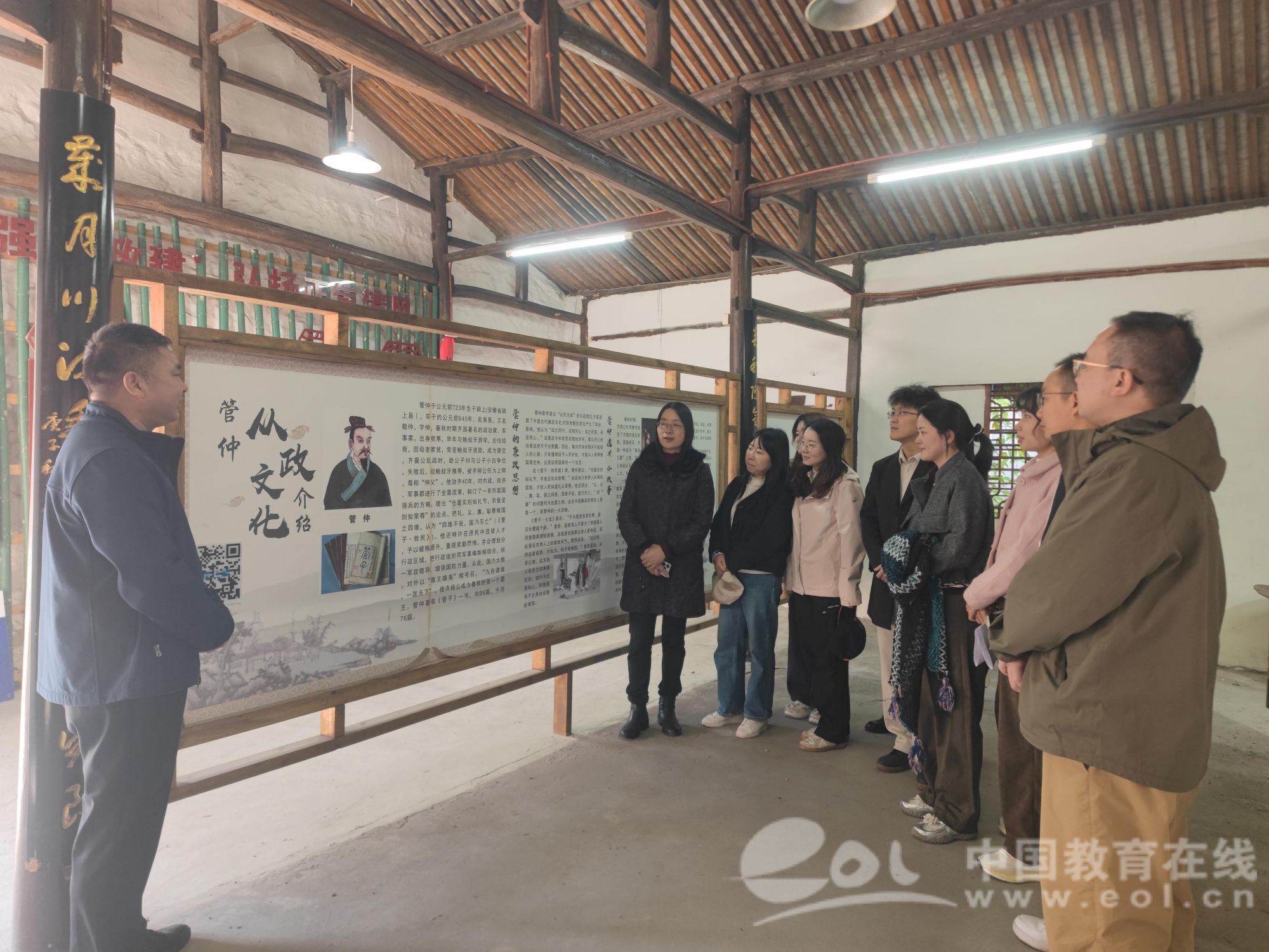 活动伊始,全体人员实地参观了古村内的管子文化遗迹,聆听管仲尊王攘夷、九合诸侯的历史功绩。章志图结合《管子·牧民》中“四维(礼义廉耻)不张,国乃灭亡”的治国理念指出:“管仲将‘廉’与‘礼义耻’并列为国家存续的四大支柱,本质是通过道德教化与制度约束的结合,培养‘知廉耻、明大义’的国民品格——这与当前财神捕鱼 开展的立德树人综合机制改革核心目标高度契合。”他进一步阐释,管仲辅佐齐桓公成就霸业时,既注重“盐铁富国”的经济基础建设,更强调“选贤任能”的吏治改革和“礼法并用”的社会治理。其“治国必先治吏”“化民成俗”的实践逻辑,正是“通过关键群体的廉洁与德行,引领整体生态向上向善”的早期探索。“这些举措对当前的师德师风建设、学生品德培养、校园廉洁生态建设具有重要启发。”章志图强调,教育工作者需从历史中汲取智慧,将廉洁基因融入育人全过程。