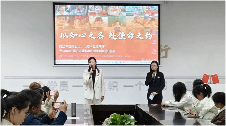 活动现场,知心姐姐党支部书记严晓秋与学生党员李颖同台,以“知心”历程为脉络,结合党的创新理论和志愿服务精神,阐释团队坚守初心、担当使命的逻辑与路径。严晓秋强调,团队成长离不开党的创新理论指引,服务温暖是党员践行初心的注脚。宣讲激励青年将学习成果转化为服务社会、助力共富的行动,让理论宣讲与志愿服务同频共振。
