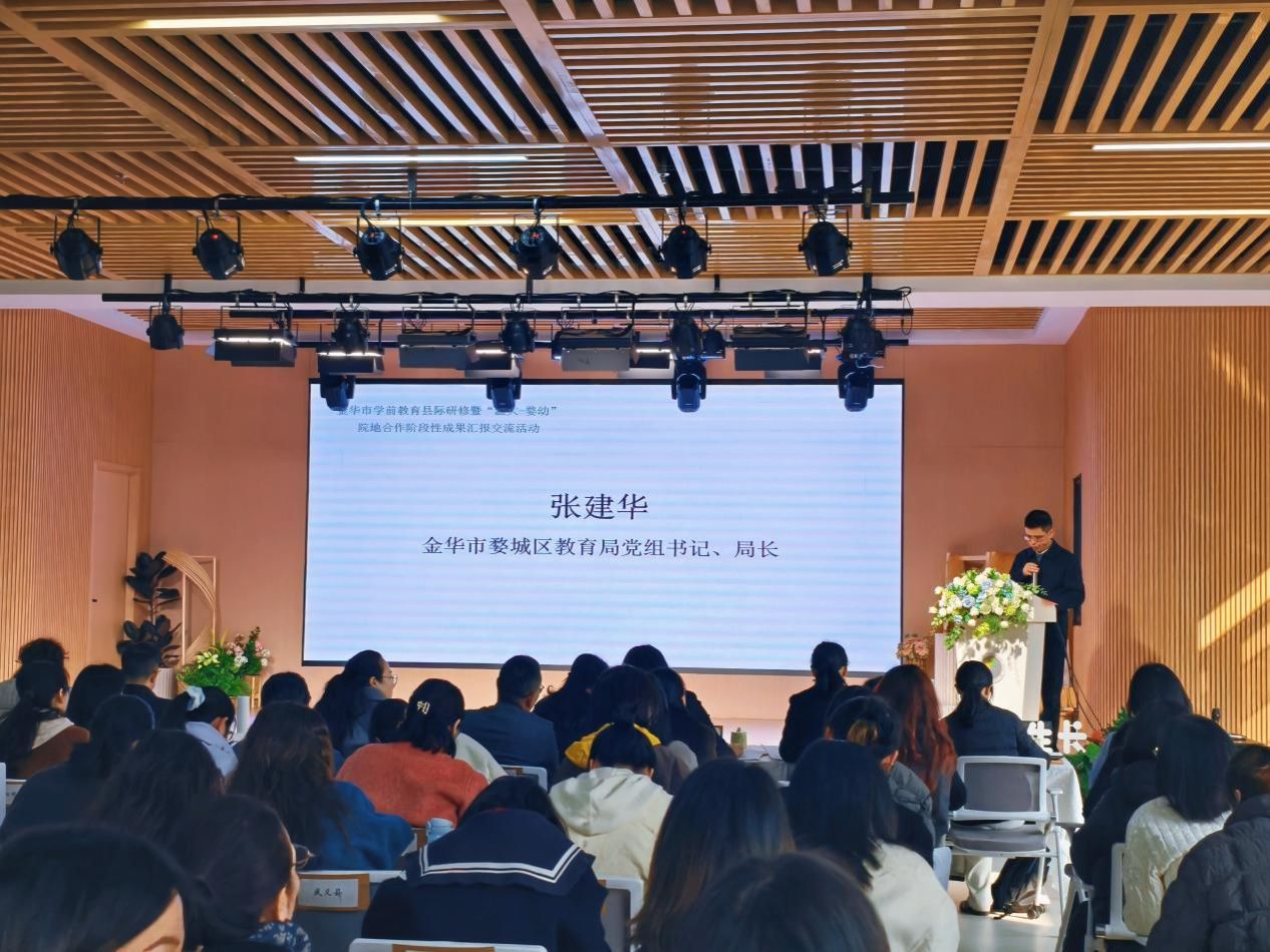 12月18日,金华市婺城区紫金幼儿园内,金华市学前教育县际研修暨“温大-婺幼”校地合作阶段性成果汇报交流活动举行。财神捕鱼 副院长林琛琛、学前教育研究中心主任李娟教授等专家,与金华市婺城区教育局党组书记、局长张建华等领导,以及金华9个县市区学前教育工作者齐聚,通过户外游戏视导、示范课展示、教研沙龙等环节,展现婺城学前教育从“普及普惠”到“优质均衡”的跨越,这也是温州与金华教育协同共富的生动实践。