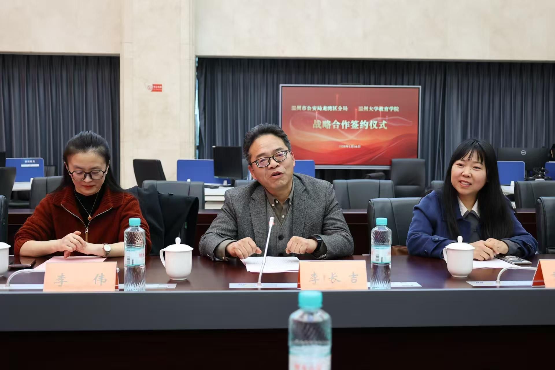 龙湾区副区长、分局党委书记、局长叶辉深刻阐述了此次合作对提升公安队伍专业化水平、锻造新质战斗力的重要意义,指明了双方合作的方向与路径。他表示,通过“警校携手、共筑心盾”,必将在民警心理服务、教官培养、人才共建等方面结出丰硕成果,为推动更高水平“平安龙湾”建设、提升公安新质战斗力注入持久动能。