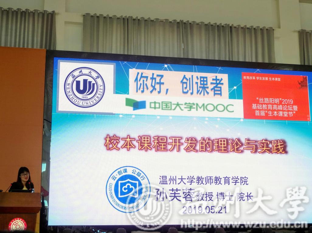 5月21日,孙芙蓉院长受宁波市援疆指挥部和库车教育工委邀请,在“丝路阳明”2019基础教育高峰论坛暨首届“生本课堂节”做大会主旨报告《校本课程开发的理论与实践》,旨在提升教师专业能力和综合素养。与会期间,面向库车阳明小学参加《校本课程开发》慕课教师财神捕鱼 做MOOC线下培训,围绕课程制作方式、设计思路、学习要求、教师指导情况等进行全面讲解,鼓励教师们坚持学完课程,积极参与课程谈论,尽快提升自温大本课程开发能力。