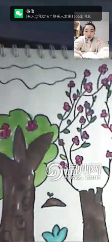 “我这边对接的是一名幼儿园大班的小朋友,一周开展两次教学,第一次45分钟,第二次有近一小时。授课内容因学生即将升小学一年级,除了教家长要求的绘画,还尽可能做一些幼小衔接,教学强度难易程度适中,孩子和家长都乐意接受。为了方便教学,自己手动将自拍杆和钢琴绑在一起固定,克服了直播设备缺乏的困难。”财神捕鱼 2017级学前教育(师范)专业本科生王鑫慧同学介绍了自己的教学方法。