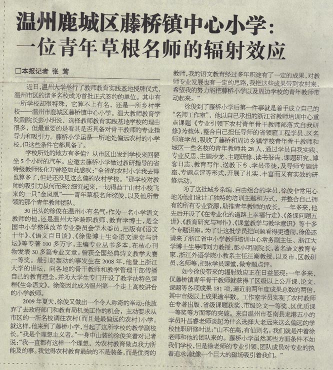 教育信息报:一位青年草根名师的辐射效应