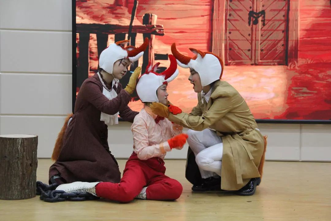 表演厅内,仙岩实验小学近300名小学生一个个探出脑袋、瞪大眼睛,只为了更近距离看到自己喜爱的角色。戏剧社成员们用精彩的表演将课本《金色的脚印》中的世界搬到了孩子们面前。一波三折的剧情让每位孩子心海起伏。他们为小狐狸的糊涂发出阵阵笑声,为正太郎保护小狐狸的爱心鼓掌,为正太郎与爸爸的亲情而感动,为美好的结局欢呼。虽然台上是“寒冷的冬天”,而孩子们却被剧中一个个细节温暖着。演出圆满结束,孩子们送上响彻会场的掌声;在主持人与孩子们的问答互动中,“保护小动物,保护大自然”、“相亲相爱的家人”等稚嫩的回答,悄悄播种在幼小的心灵。本次教育戏剧表演在孩子们依依不舍的目光中落下帷幕。