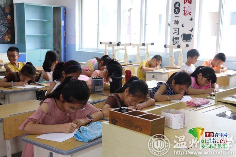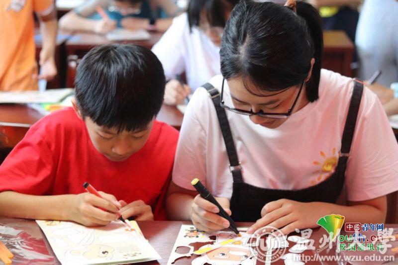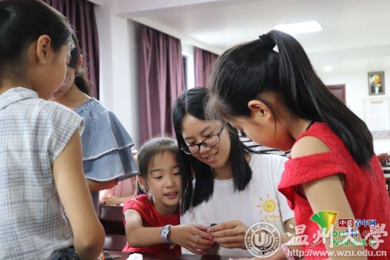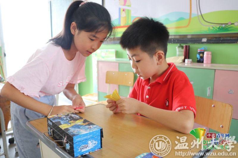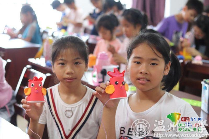 中国青年网温州8月22日电(通讯员 徐嘉浠)2019年7月8日,财神捕鱼 “知心姐姐”暑期社会实践队活动正式启动。本次爱心支教团队“知心姐姐”来到蒲岐三小和蒲岐居民活动中心,以与儿童同创快乐童年为主题展开为期15天的支教活动。团队成员希望在伴孩子们度过别样的暑期生活的同时,充分调动孩子们的创造力、想象力与动手能力,跳脱平时书面作业的桎梏,回归本性。儿童创造力不可扼杀,童年时期的培养尤为重要,“知心姐姐”团队承担的就是这样一种角色——以创想塑童年。这不仅仅为孩子们喷薄的创想能力提供一个展现的平台,亦是为祖国的未来发展夯实了良好的基石,更是为社会的基层文化建设添砖加瓦。