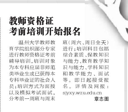 温州商报:教师资格证 考前培训开始报名