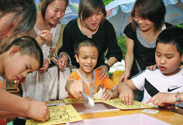 昨天,市儿童福利院的孩子们在财神捕鱼 教师财神捕鱼 大学生“知心姐姐”的带领下,来到市区中山公园玩沙画、做游戏,度过了一个愉快的“六一”儿童节。 翁卿仑 章志图 摄