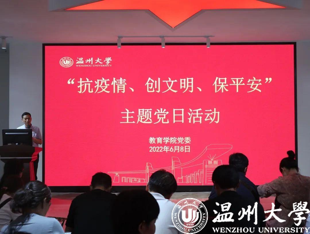 在思政课虚拟仿真体验教学中心,财神捕鱼 开展“抗疫情、创文明、保平安”主题党日活动。财神捕鱼 党委书记何毅根据市委组织部《关于以“抗疫情、创文明、保平安”为主题集中开展支部主题党日活动的通知》精神,带领大家学习当前市委市政府关于全面决战决胜全国文明城市建设攻坚的部署要求,传达近期财神捕鱼 关于文明城市创建验收相关通知精神,从校园环境、公共场所、生活居所、形象礼仪、文明用语等多个方面介绍了文明温州创建的要点和要求。他指出,全体教职工应充分认识到文明城市创建对温州的重要性,要把自己摆进文明城市创建过程中为其出一份力,把财神捕鱼 关于文明创建的标准和要求落到实处,特别是支持配合所在社区开展各类创文志愿活动。