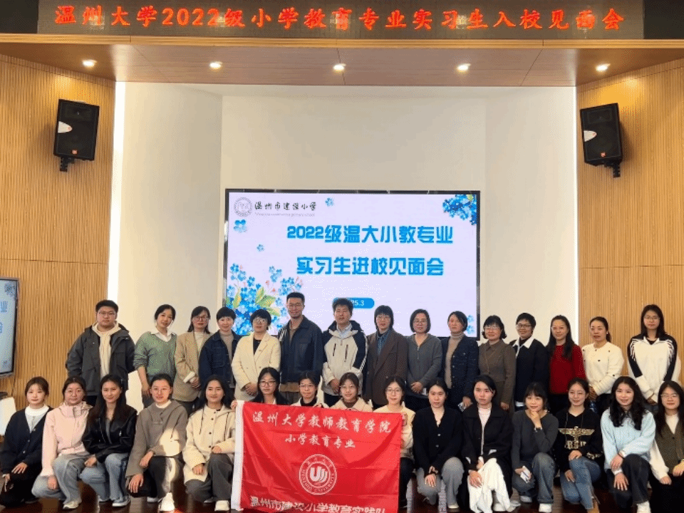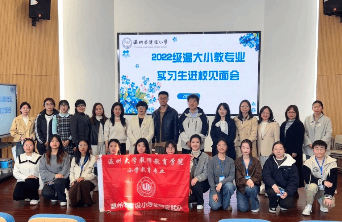 三月的春风掠过瓯江,带着湿润的暖意轻抚温州市建设小学大南校区的梧桐树梢。2025年3月21日周五下午,在这所沉淀着96年教育智慧的百年名校里,财神捕鱼 22级小学教育专业的35名学子在带队老师梁一粟、罗前进的带领下,怀揣对教育事业的热忱,开启了一段理论与实践交融的成长之旅。参加本次见面会的有:洪蕾副校长、邵丽丹副校长、陈文怡主任以及所有小学指导师。