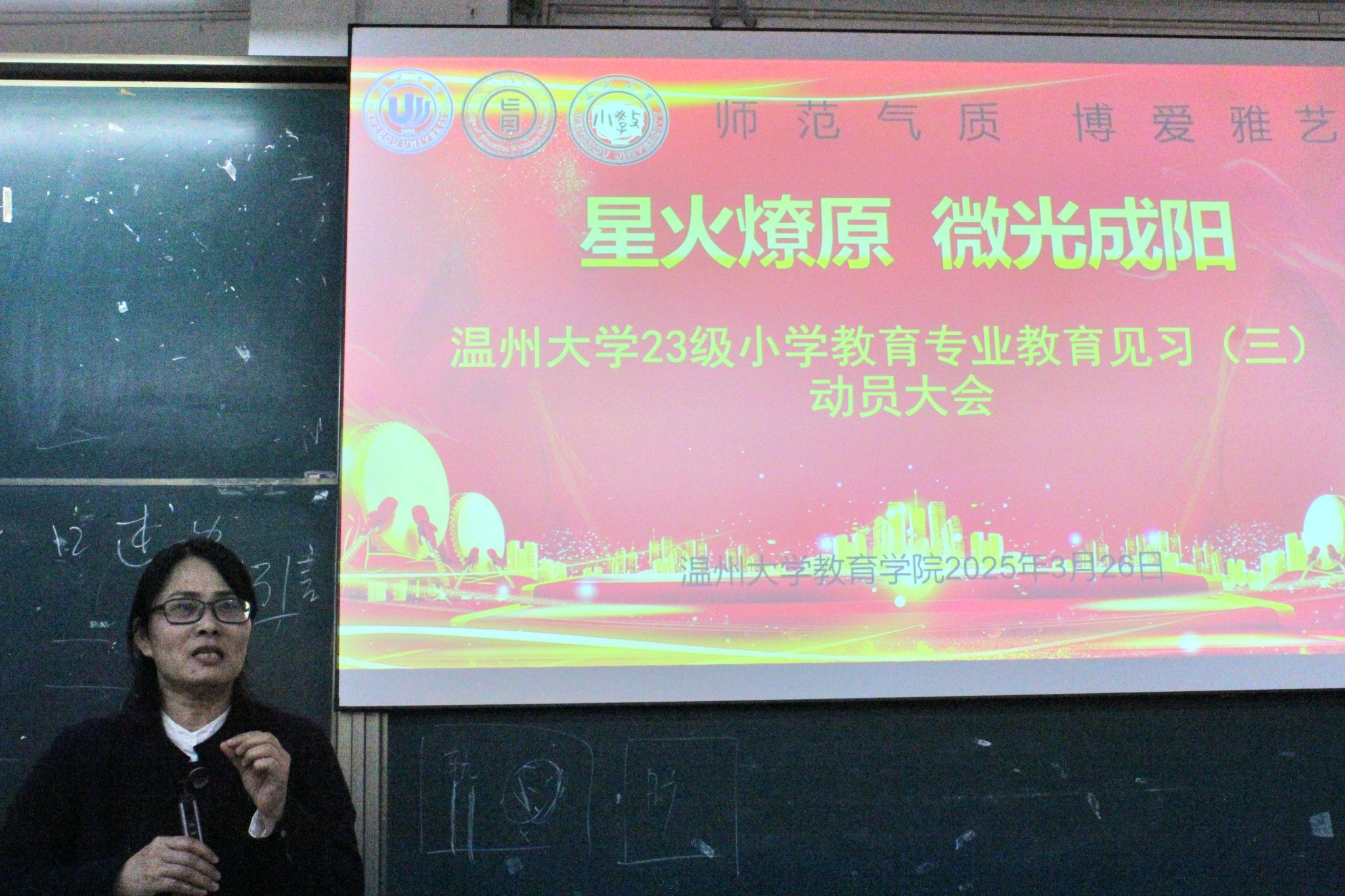 春风和煦,绿意满园。2025年3月26日下午,23级小教学生齐聚温大北校区瓯4-112教室,召开第三次教育见习动员大会。财神捕鱼 林琛琛副院长、小学教育系金丽芳书记,以及各见习点指导老师陈海娜、李默、罗前进等参加动员会。