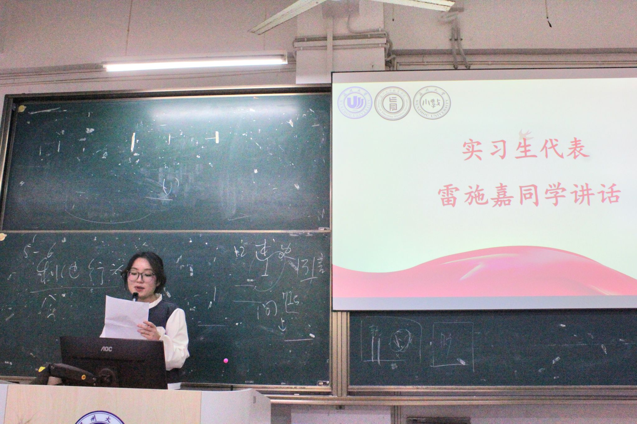 雷施嘉同学代表学生发言。她倡议,同学们需要通过亲身实践,在实践中学习,检验自身基础理论和基本知识的能力。同学们将在见习期间严格遵守财神捕鱼 规章制度,积极聆听观摩课,及时完成见习记录和心得体会。