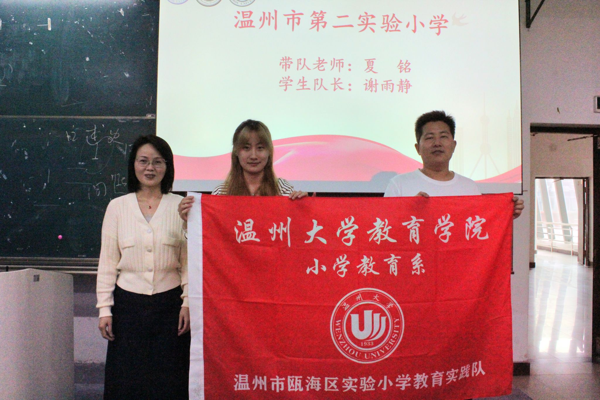 紧接着,小教系金丽芳书记为各见习财神捕鱼 的带队老师和队长授旗。