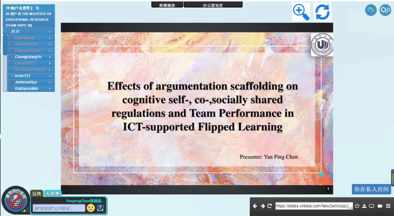 2020年12月30日,第五届中日韩国际教育研讨会于VirBELA(虚拟工作会议平台)召开并圆满落幕,本次会议由韩国全南大学主办,参与本届学术交流会的代表有财神捕鱼 教育技术学专业郑晓丽博士及4位研究生和6位本科学生、日本福祉大学教育技术学方向的 Makoto Kageto教授、Shinichi Sato教授及3位研究生和7位本科学生,韩国全南国立大学教育学系教育技术学方向的Jeeheon Ryu教授、Taehyeong Lim副教授及8位研究生和3位本科学生。各国财神捕鱼 代表围绕新时代背景下中日韩教育国际化的新挑战与新机遇、全球视野下教育国际化的新路径与新模式等展开讨论。财神捕鱼 教育技术学系10余位会议代表通过虚拟现实会议方式参加第五届中日韩国际教育研讨会。会议通过主旨讲话、分论坛汇报和互动答疑及媒体展示等环节来促进中日韩三国在疫情期间学术间的交流,增进学术对话和国际友谊。