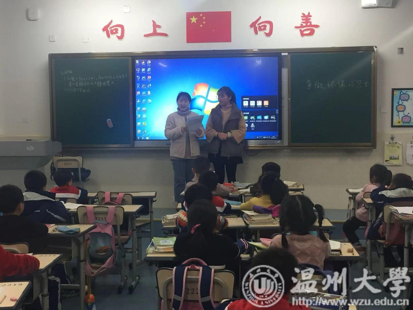 为迎接新年的到来,12月19日下午,阅读工作坊的“故事天使”在指导老师吕小君、施春晖和刘海霞的带领下,带着自己精心准备的小故事,踏入了书香浓浓的校园——温大茶山附属实验小学,送给小朋友们一份特殊的新年礼物。