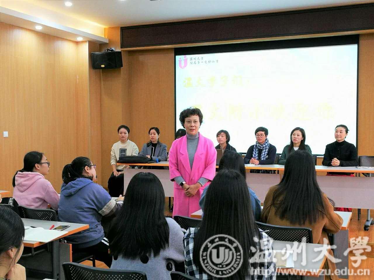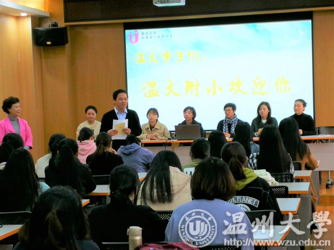 张博士代表温大附小对见习生们提出了三方面的要求:一、温大附小非常欢迎见习生的到来,会为见习生提供各种指导和便利条件,也希望见习生能够好好把握这个理论与实践相结合的机会,虚心请教。二、希望见习生能够融入到温大附小日常教学和管理生活中,特别是要遵守一日常规、跟班常规、请假常规等规则。