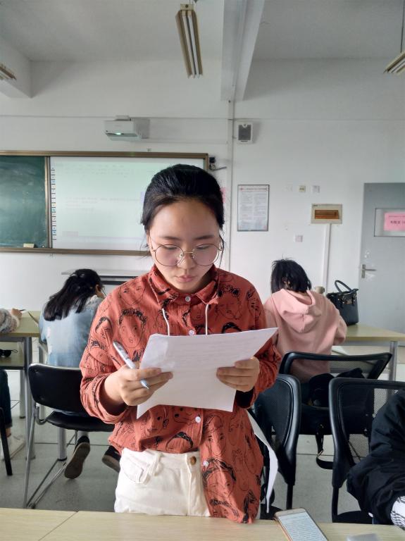 接下来进入阅读环节,每小组根据阅读提示指派发言任务。大家认真阅读,细细品味,热烈讨论,人人都希望在小组分享时有最精彩的表现。每当一个小组成员站起来发言时,大家的目光全都聚集到发言者上,有对发言者的期待,更是对发言者的一种鼓励和赞赏。当听到难词讲解和寓意分析时,大家立刻拿笔记下自己的疑惑之处;当听到同学的精彩言论时,大家先对视一眼,然后情不自禁地鼓起掌来;当意见与发言者不相同时,大家各抒己见。