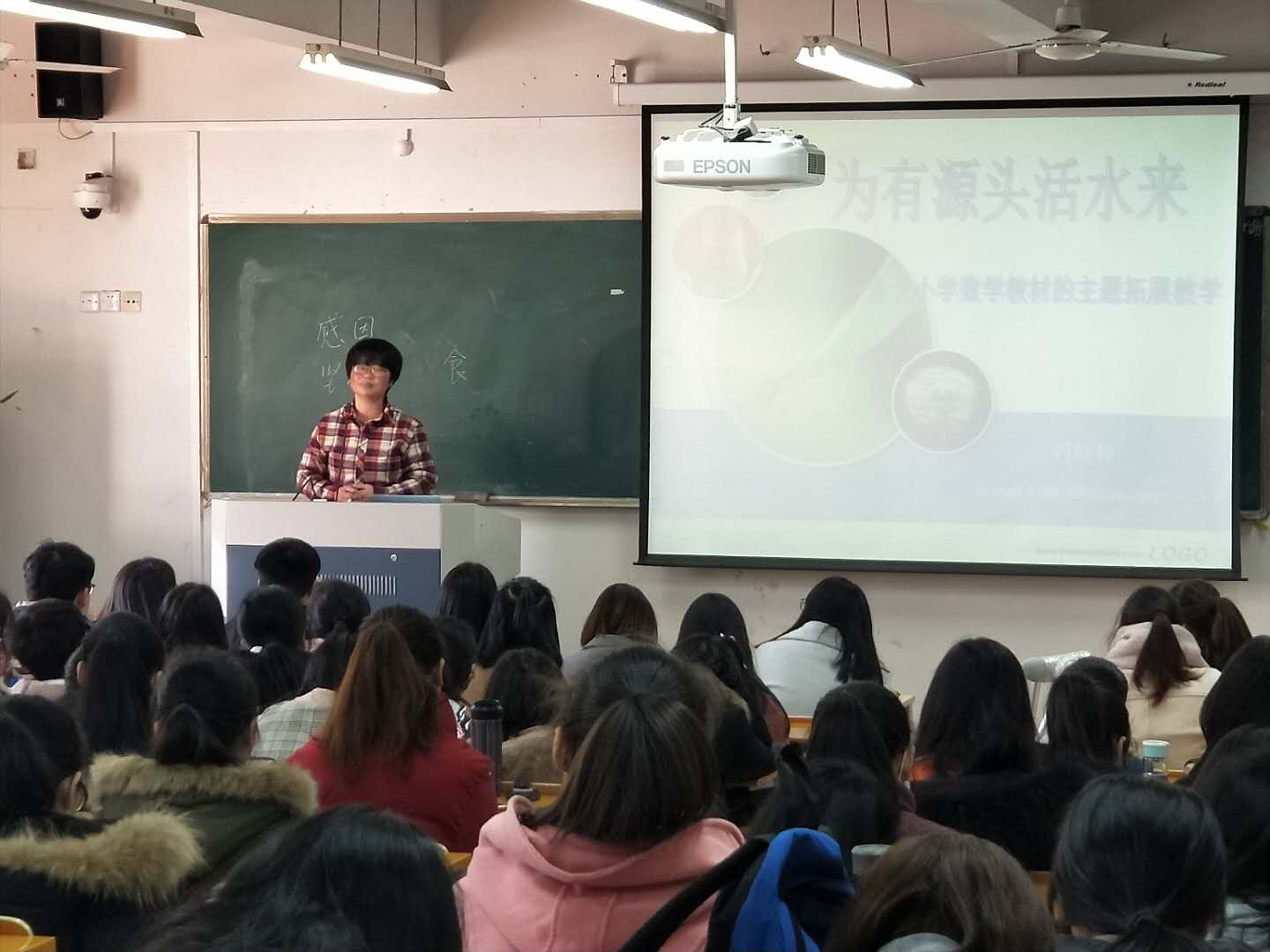 小教系在9B301举办了新一期的名师大讲堂活动,邀请了浙江省教坛新秀、温州市名师、乐清市大荆三小副校长符玲利老师作为主讲人。本次活动由小教系主办,小教工作室承办,参加本次活动的有16级小教全体学生与14级溯初班部分学生。小教系章勤琼老师主持本次讲座。
