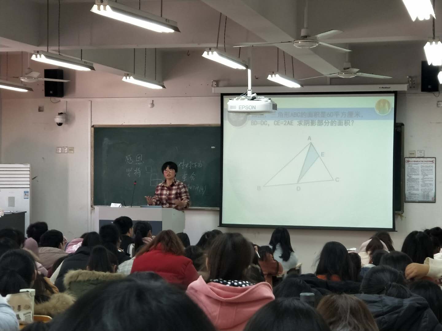 接着,符老师以《基于小学数学教材的主题拓展教学》为题,以问题“教学生轴对称图形以及对称轴时,遇到的学生对称轴掌握不深,知识点衔接不完善,该怎么处理”为切入点,分三个部分讲述:
