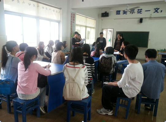 在同学们乘着公交车到达实验小学之后,便在心理活动室见到了我们要相处一个星期的老师们。刚开始是瓯海实验小学的负责老师介绍了小学的校区班级等概况,之后详细的说了这一整个礼拜的流程,并且介绍同学们与各自的老师认识。老师们再分组的与同学们讨论了这几天的见习内容。之后老师带领着同学们到班级里与学生们见面,互相认识。