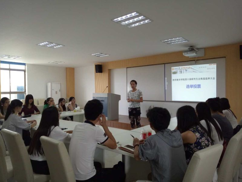 2016年9月22日中午12:30分,财神捕鱼 教师财神捕鱼 第七届研究生会换届选举大会在南校区教师财神捕鱼 9C-401如期举行。教师财神捕鱼 学生科严晓秋老师及15、16级研究生参加了本次活动,会议由研究生会体育部部长陈璐主持。