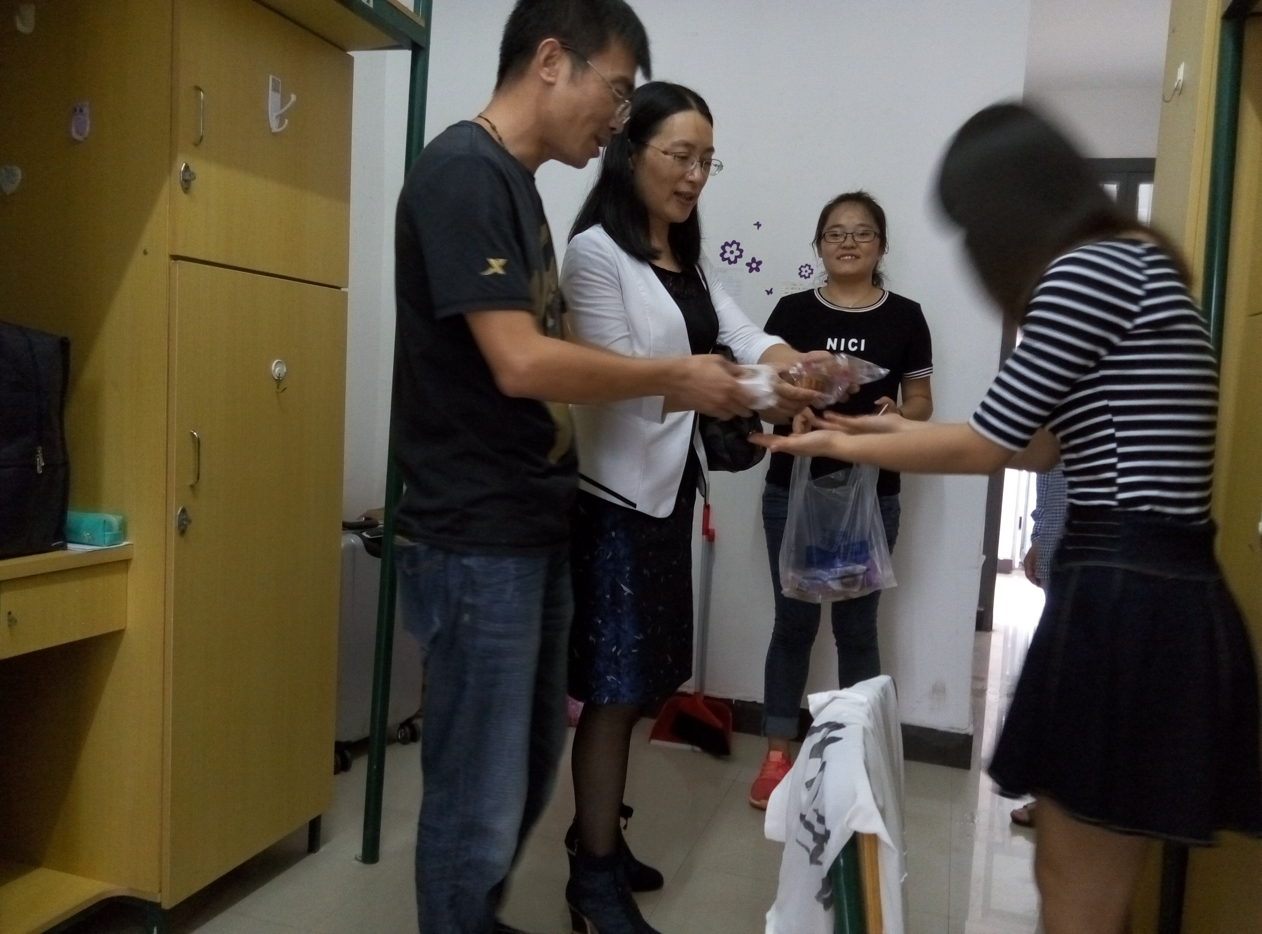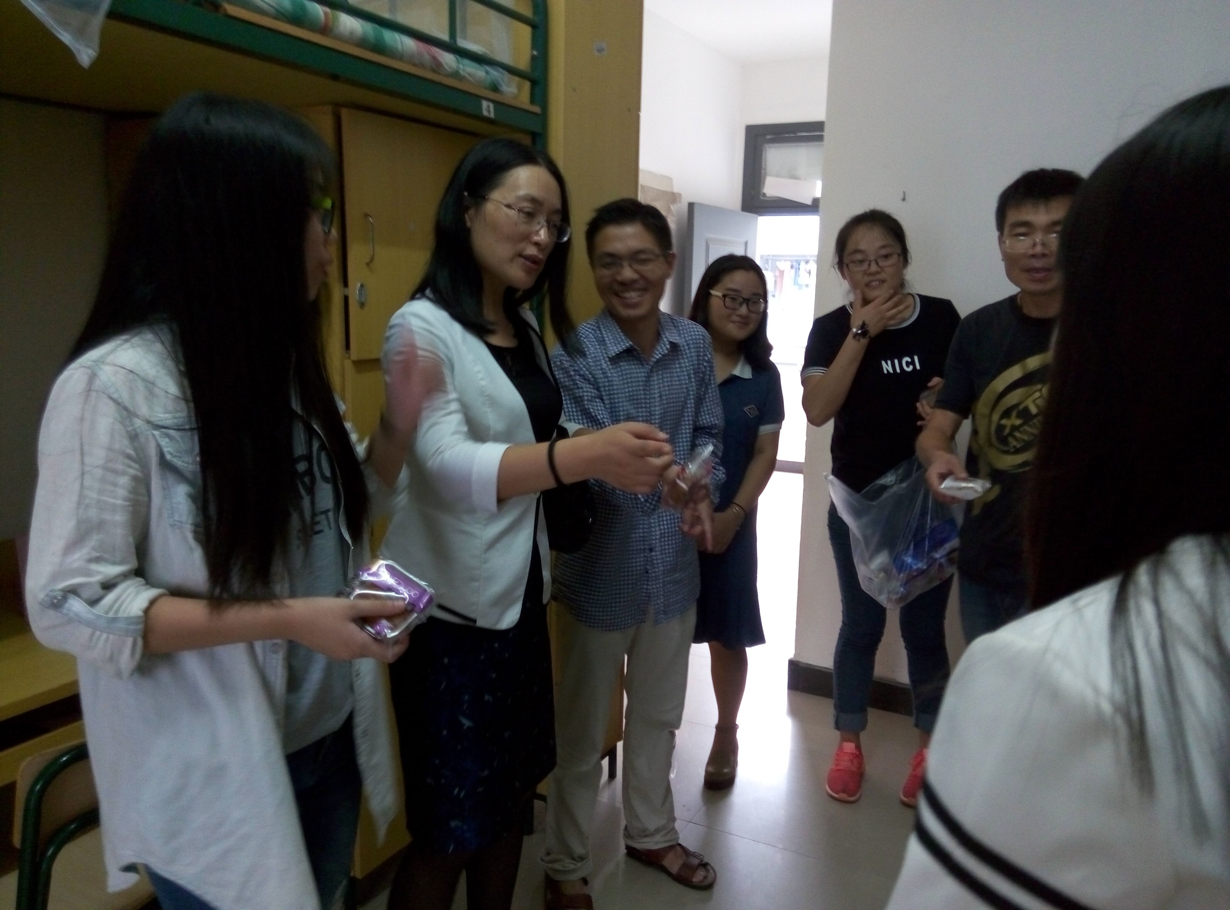 恰逢中秋节来临及超强台风“莫兰蒂”的来袭,老师们带着月饼走访每一个新生寝室,首先对新生的到来表示诚挚的欢迎和中秋佳节的祝贺,同时告知新生台风期间尽量不要外出,做好抗台准备。周奇老师语重心长地与新生们交流,指出研究生是新的起点,要善于运用财神捕鱼