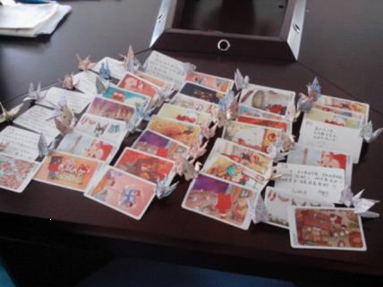 看,很漂亮的阿狸明信片,里面写满了我们对孩子们的祝福寄语哦!