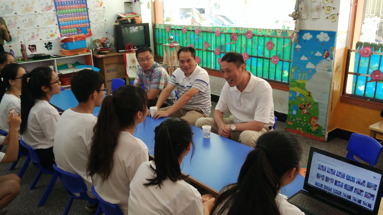 老师们顶着烈日看望实践队员们,非常亲切地关心实践活动的开展。指导老师陈铿非常亲切地与队员交流经验。老师们的慰问给了队员非常大的前进动力。