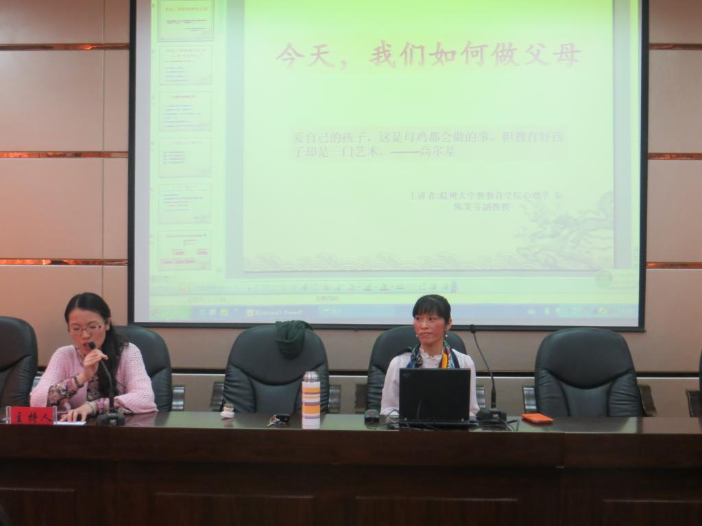心理学系陈美芬老师前往苍南为家长们开展讲座。本次讲座的主题为“今天,我们如何当父母”,受到了家长们的热烈欢迎,整个会场座无虚席。陈美芬老师先是指出:妈妈高度是孩子成长的起点,爸爸的高度是孩子成长的方向,阐述了孩子成长中父母齐心协力的重要性。然后,直击困扰家长们的焦点问题“我的孩子去哪儿?”,并从心理学层面,剖析了家长们陷入了普遍集体性焦虑的成因,接着结合一个个鲜活的案例向家长们提出“做一个思考型的父母、学习型的父母、倾听型的父母、阳光型的父母”等具体建议。期间,陈美芬让家长们分享自己教育子女过程中的诸多感悟,引起了家长们强烈的共鸣,会场上不时爆发出热烈的掌声。