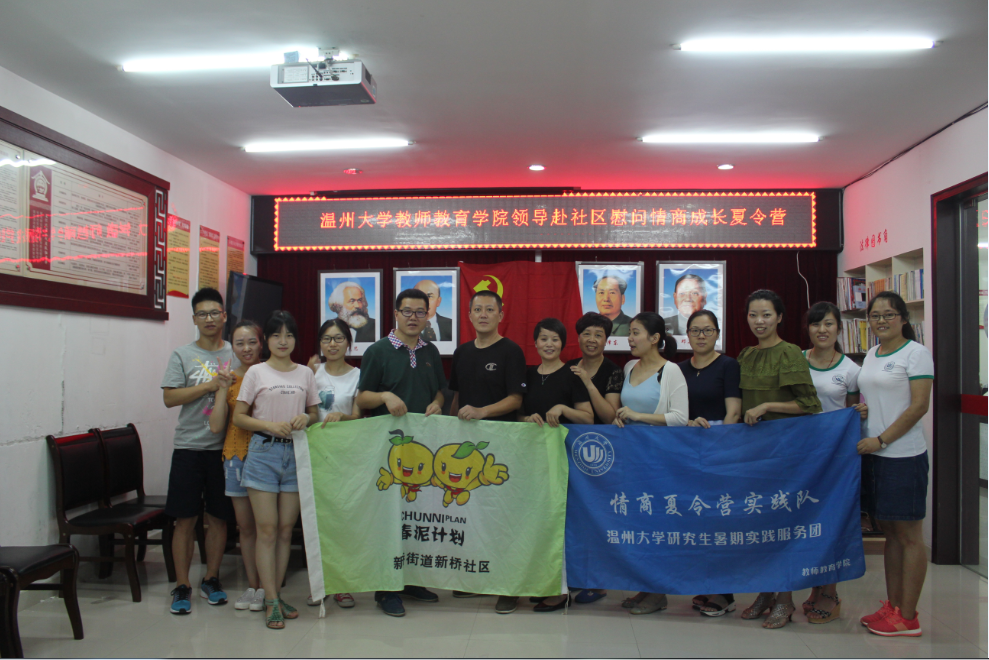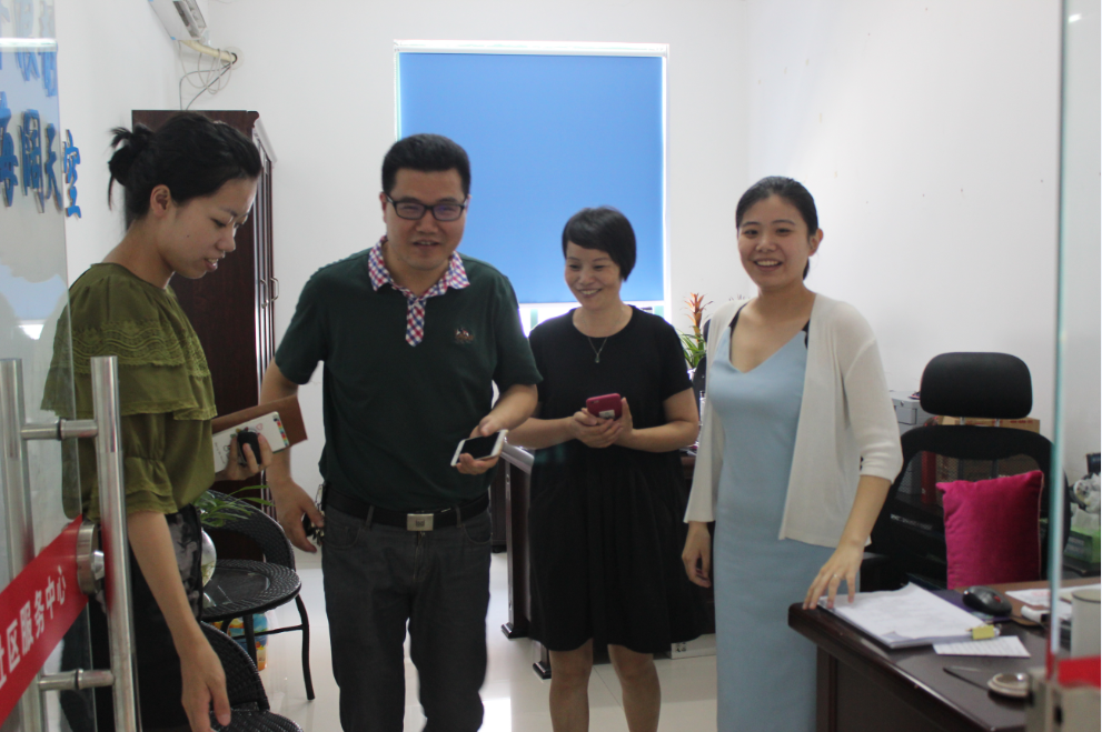 胡瑜院长和学生科严晓秋老师冒着酷暑来到新桥社区,代表财神捕鱼