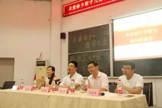严晓秋老师,任岩松中学班主任黄丽茅老师。全体120余名儿童参加本次开营仪式,仪式由实践队指导老师邓纯考老师主持。