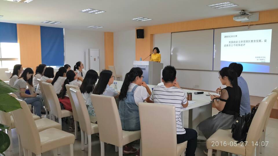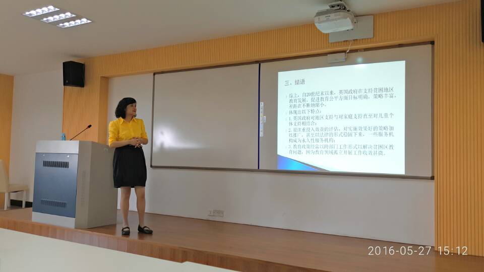 教授倪晓敏博士为大家讲解20世纪末以来英国政府支持贫困区教育发展而提出的促进教育公平政策。讲座由教师财神捕鱼