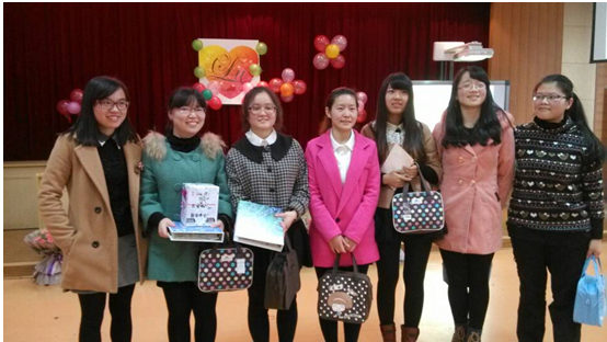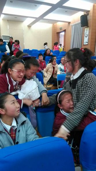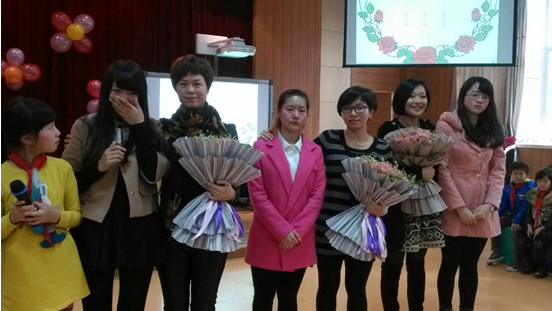 之后的送礼物环节,百里路小学心育组的老师们为我们七位实习生都准备了一份丰厚的礼物,孩子们给我们实习老师送了很多小礼物来表达他们对我们的不舍,我们实习生则分别给指导老师送康乃馨来表达我们对她们的谢意。六(7)班的学生们在《暖暖》的歌声中把我们七位实习生请到了台上,我们七个人含着泪说了离别的话。诗朗诵《再见了,老师》把欢送会推上了高潮,孩子们跟我们实习老师抱成一团,哭成一团……