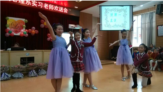 欢送会在五(5)班热情洋溢的跳操中拉开帷幕,一支《幸福跳跃吧》把老师和同学们的气氛都带动起来了;紧接着二(6)班的孩子们唱了一首由“爸爸去哪儿”改编的歌曲“老师去哪儿”,唱到动情处时好几位实习老师都在偷偷抹眼泪;之后六(5)班以及五(3)班的孩子们给我们带来了歌舞《淋雨一直走》和歌曲《同一首歌》,让我们看到了百里路小学的孩子们能歌善舞、多才多艺的一面;五(4)班的孩子们别出心裁,拍了一段采访同学们想对实习老师说的话,各种舍不得实习老师走的心声再次把我们几位实习生感动哭了。