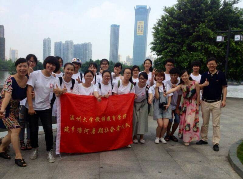 院长郑信军老师、党总支副书记杨丽君老师、学前教育系支部书记兼筑梦塘河实践队指导老师陈旭微老师冒着炎炎烈日,代表财神捕鱼