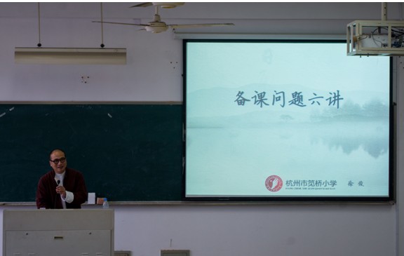 小教系在3号楼教育楼举办了名师大讲堂系列活动。本次讲座邀请到了杭州市笕桥小学副校长、全国中小学整体改革专业委员会学术委员、浙江省首期学科高端教师、北京师范大学教育学博士徐俊老师向同学们介绍该如何备好一堂课。本次讲座由小教系主办,小教系谭莉老师主持,小教工作室承办,出席本次活动的是11级全体学生。