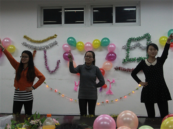 在一片欢庆佳节的热闹氛围中,2015元旦晚会正式拉开了序幕。首先是研一和研二的学生共同表演的舞蹈《小苹果》。她们优美而又有趣的动作惹得同学们阵阵欢呼。接下来是游戏环节,别开生面的“执行命令”、“成语接龙”引得大家捧腹大笑;再接着,是一首非常好听的歌曲《你是我心内的一首歌》,她们情深婉转的声音,缓缓的歌唱,低沉而优美,优美动听的歌声俘获了观众的心。还有两只老虎、三句半、诗朗诵等节目,大家都拿出自己的看家本领为新年的晚会带来笑声,送去欢乐。最后,为了大家同玩同乐,我们进行了游戏比赛,赢的一方会有奖品。有大家最热衷的“谁是卧底”,有与众不同的“爱你在心口难开”,更有笑料不断的“你来比划我来猜”。全体研究生不分年级,其乐融融,真正成为了一家人。