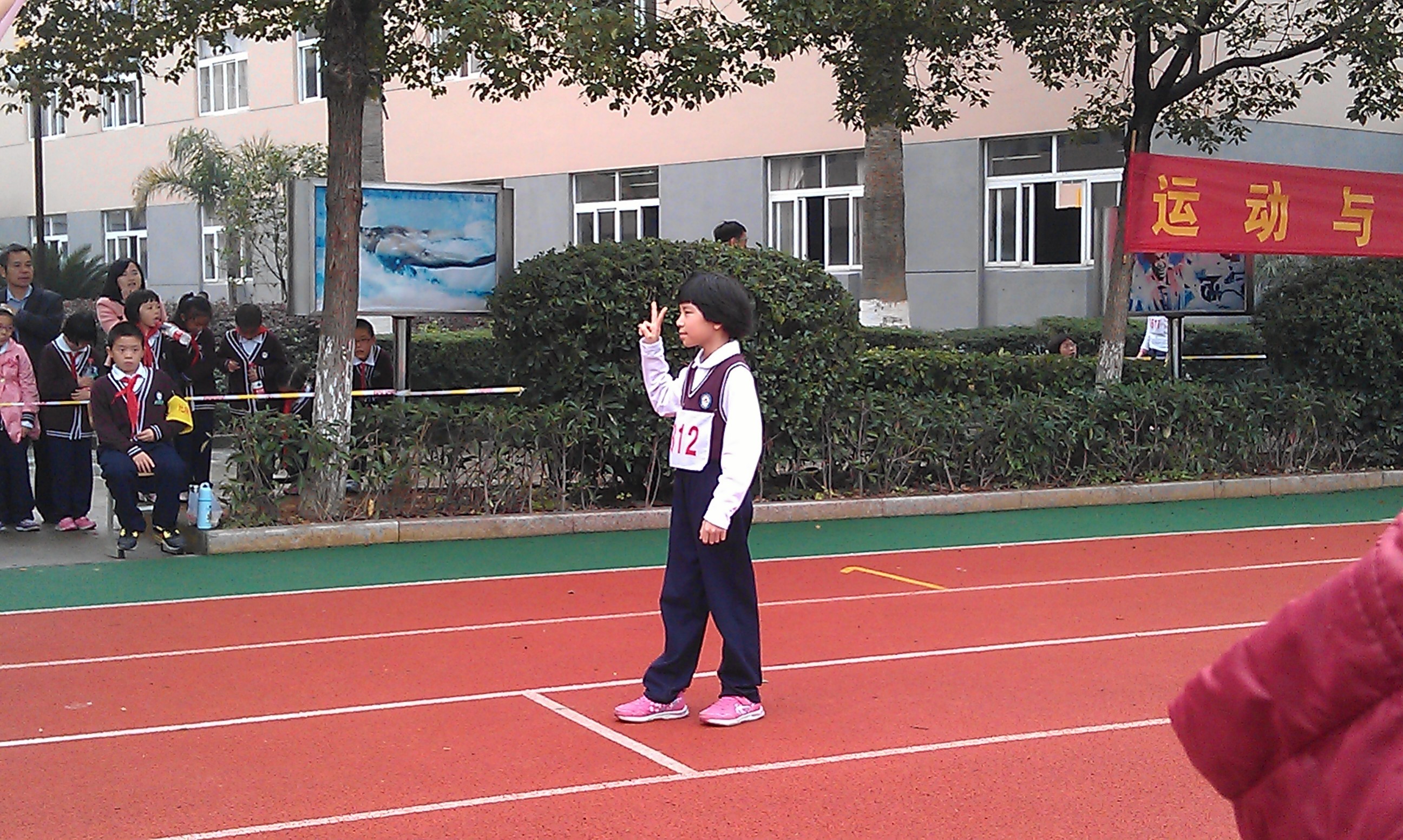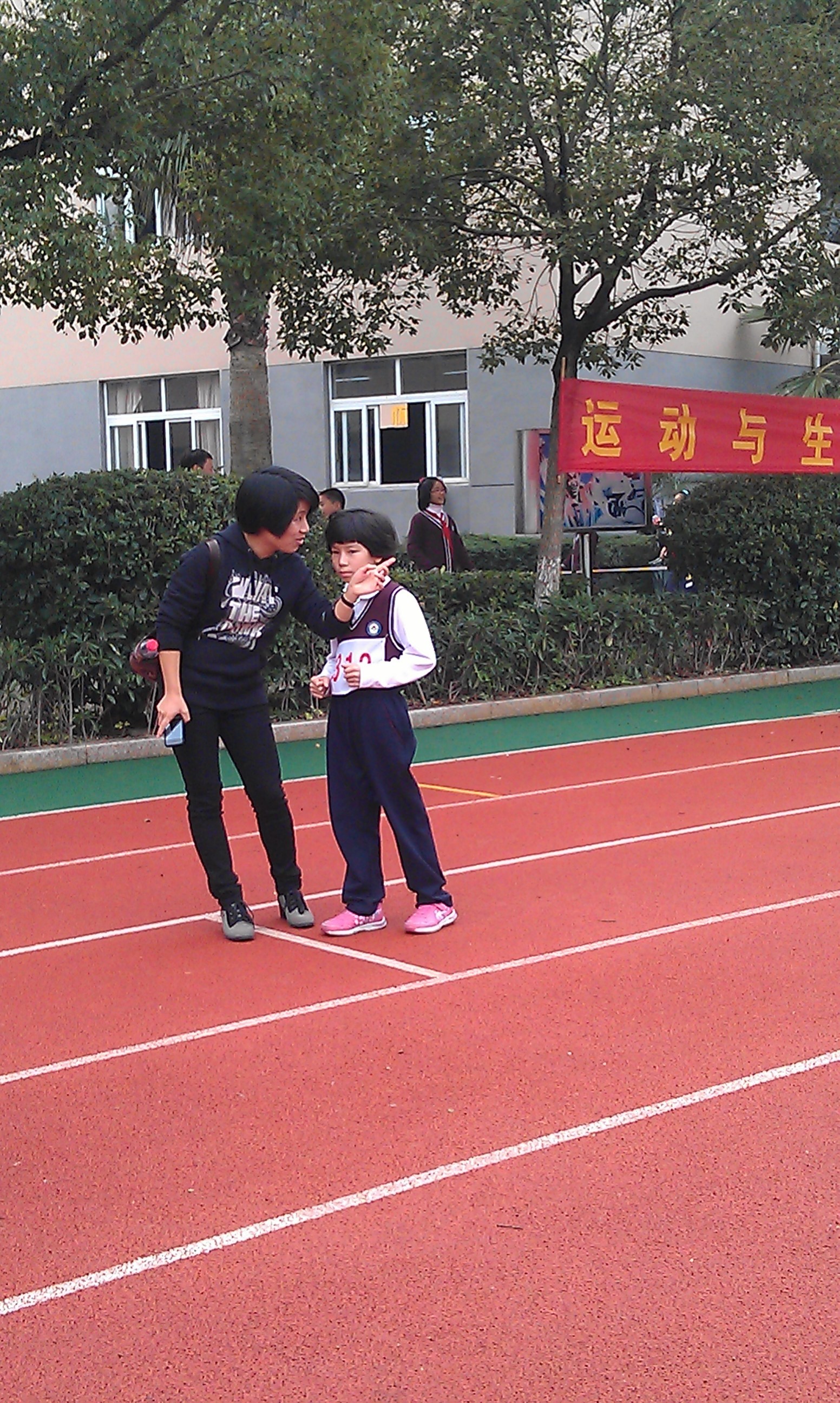 比赛快要开始了,瞧咱们的小运动员多淡定。准备之前先来张靓照吧!耶,胜利一定属于我们。不过,运动员看着淡定,家属们可就露馅了。比赛之前赶紧再支几招,润润嗓子,活动活动筋骨,有备无患嘛。加油!老师在终点等着你!