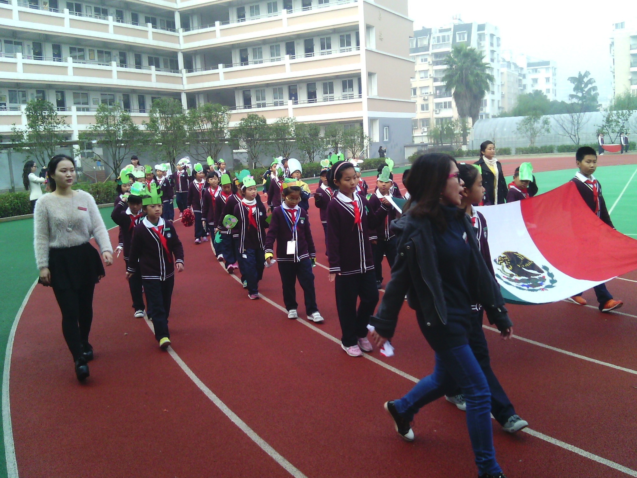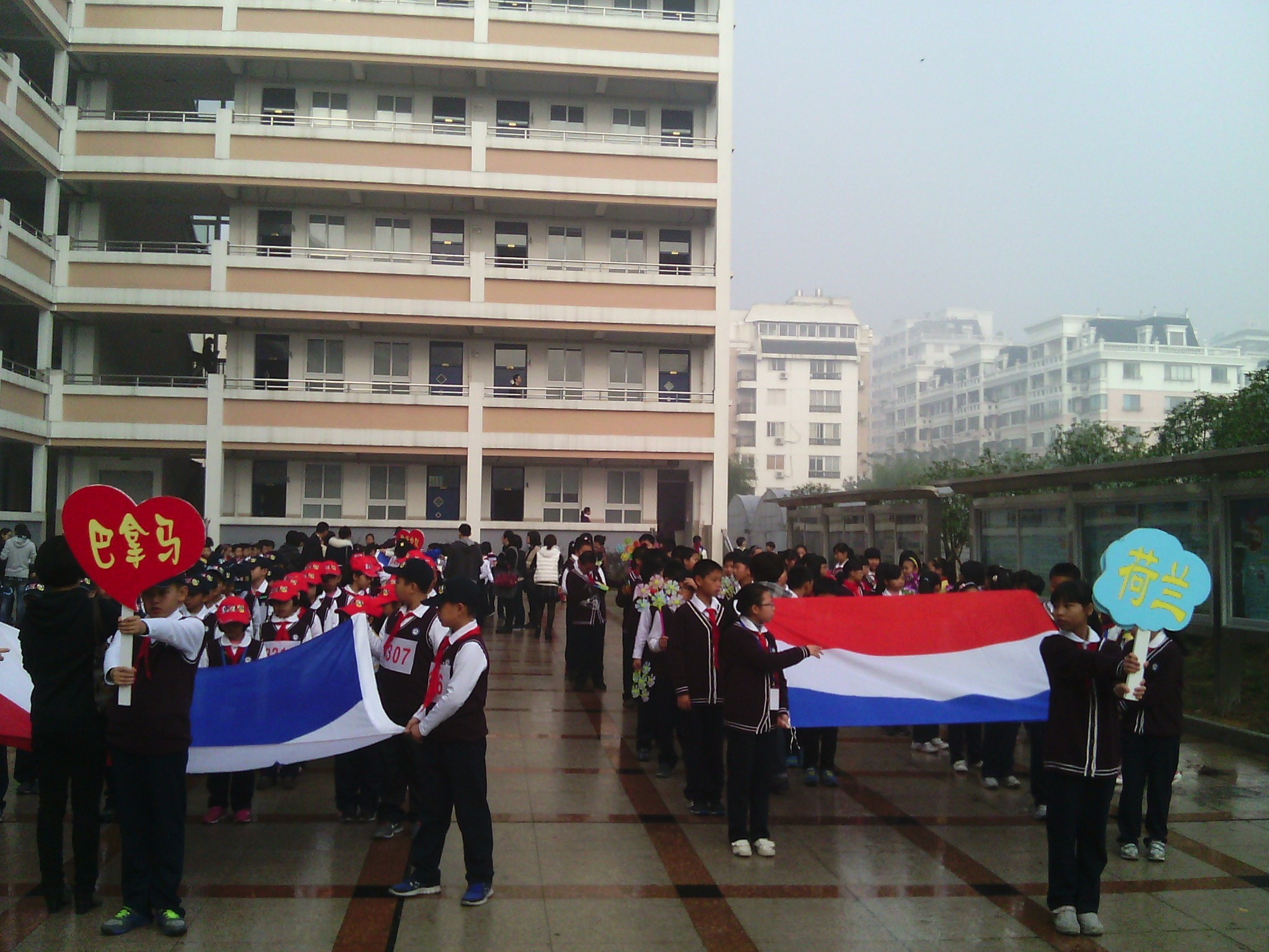 周四、周五两天可以说是孩子们最开心的日子了。第8届校运动会的召开,为孩子们的在校生活增添了新的色彩。只是天公不作美,运动会期间,天总是灰蒙蒙的,偶尔还伴随着或大或小的阵雨,不过,这丝毫不影响同学们对运动会的热情。看,咱们巴拿马代表队的队伍排得多整齐,一个个精神抖擞,整装待发。