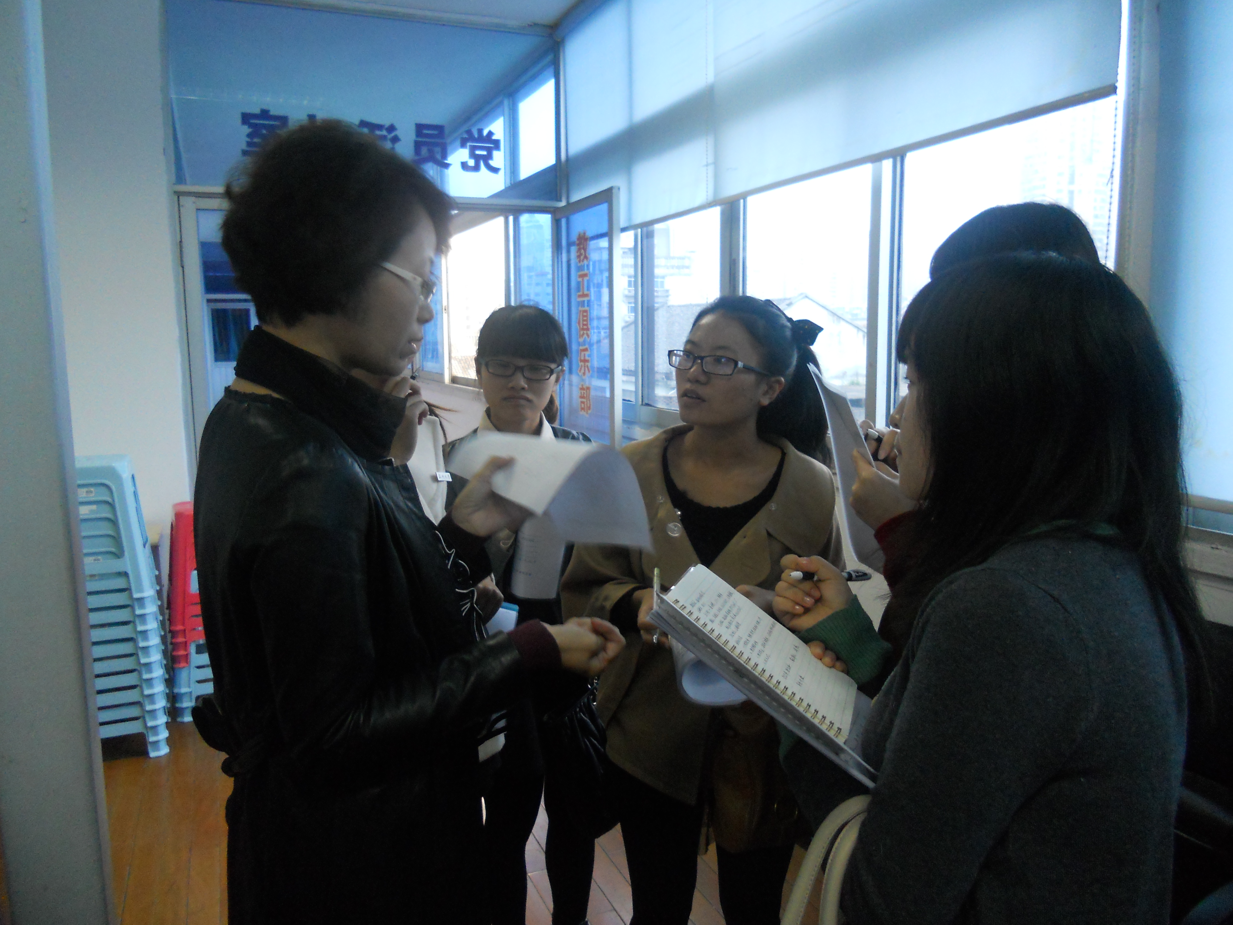 10级小教系的学生在张龙老师的带领下,准时来到温州市建设小学(五马校区),参加见习入点见面会。建设小学教导处主任杜纪东老师、副主任黄玉晓老师接待了我们。建设小学的班主任和各科任课教师按照见习分组与我们分别进行了交流。各位班主任从班级的作息时间安排、课程设置、班级总体水平及学生基本情况等方面给我们作了详细介绍,并给我们布置了见习任务。
