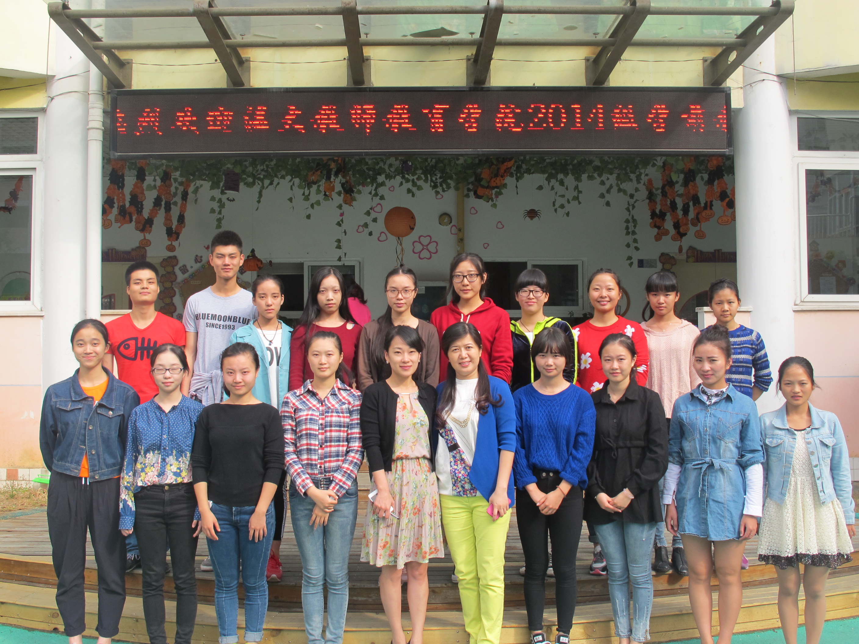 由于第一次零距离接触幼儿园,同学们异常兴奋,原定7:50到园,7:40全体同学与带队老师都到齐了。首先我们参观了幼儿园的环境布置,随后来到会议室聆听杨婧老师与王红女园长对我们作见习任务的布置。
