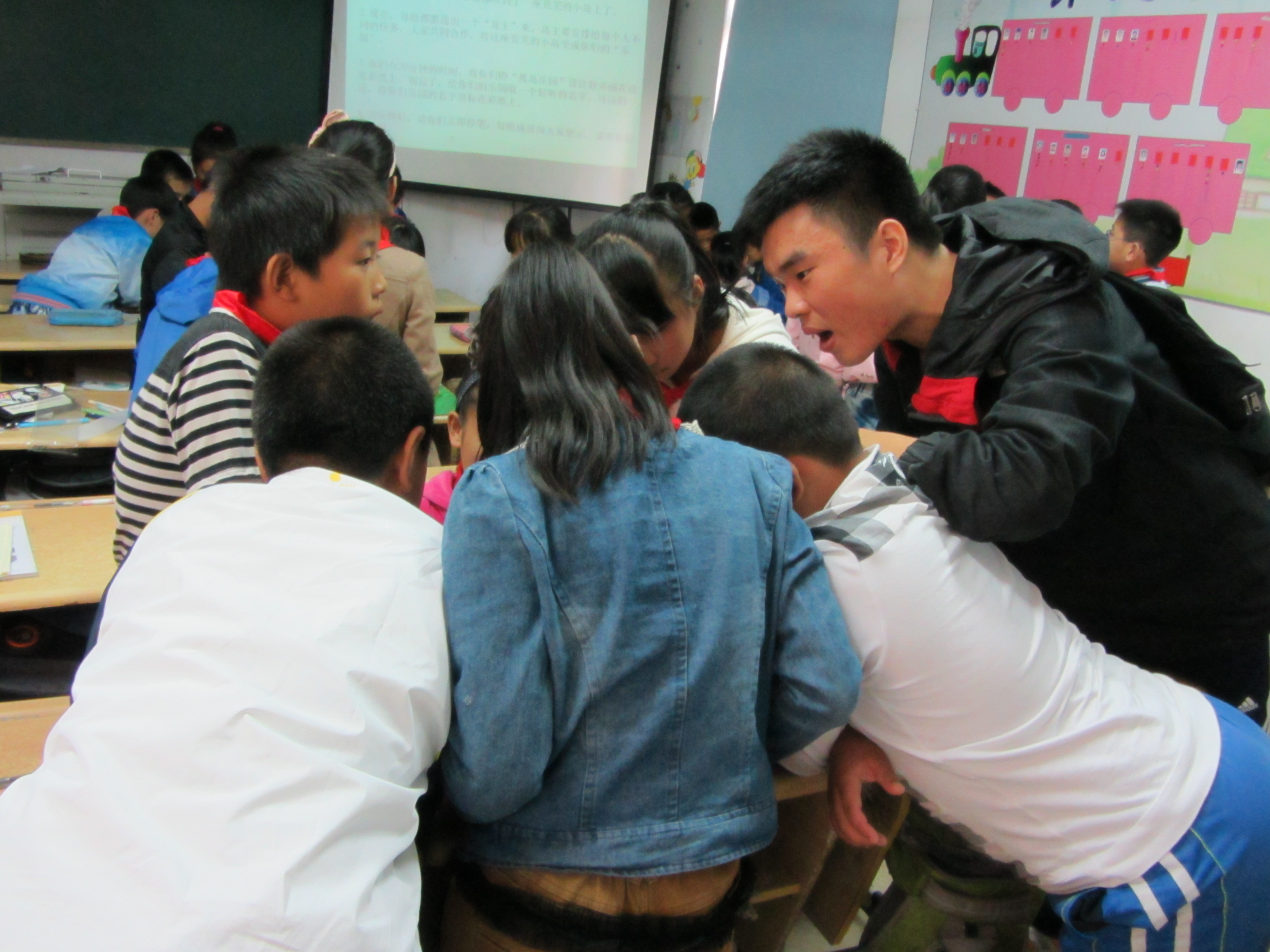 的周到安排下,每个班级的小学生对团体辅导游戏有浓厚的兴趣,积极踊跃参与,团辅活动顺利地开展。最后,我们在《相亲相爱一家人》的歌声中结束了此次的活动。