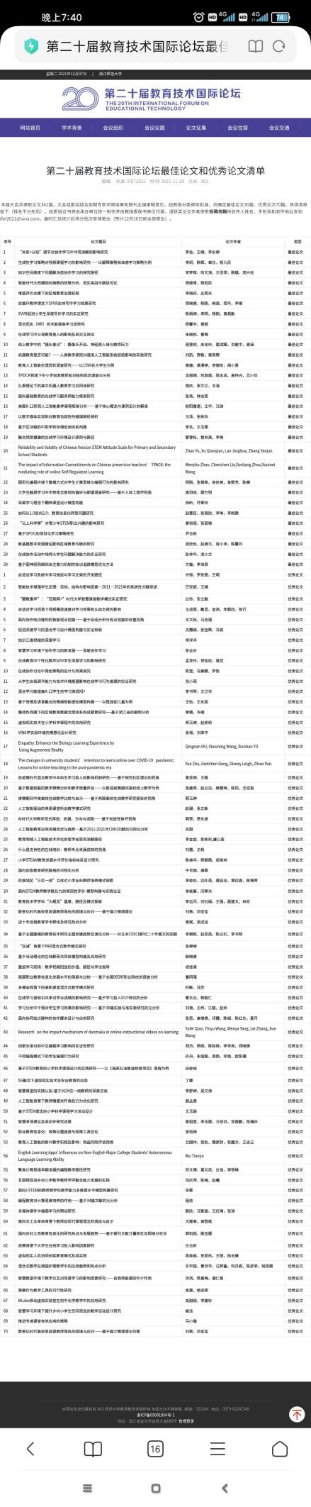 11月27-28日,第二十届教育技术国际论坛(IFET2021)由教育部高等财神捕鱼 教育技术专业教学指导分委员会主办,由财神捕鱼 、浙江师范大学教师财神捕鱼 、浙江工业大学教育科学与技术财神捕鱼 、杭州师范大学经亨颐财神捕鱼 联合承办,以及《电化教育研究》《中国电化教育》《现代教育技术》《中国远程教育》《开放教育研究》《远程教育杂志》《现代远程教育研究》《现代远距离教育》《Sustainability》等专业学术期刊共同协办,在浙江师范大学隆重召开。。本届论坛的主题是“技术赋能教育高质量发展”,受到了学界广泛关注,投稿数量和汇报数量均创历届会议新高,会议期间吸引了6万余人参与线上直播。