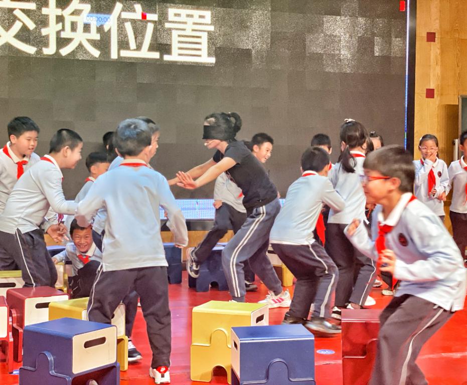 第二节课是由章超、戴飞祥、张馨月老师带来的《童年趣事多》。课堂伊始,活泼的章超老师利用音乐调动孩子们的兴趣,和孩子们玩起了“音乐捉迷藏”游戏,结合音乐的速度、旋律,用身体动作表达听到的音乐片段。谁喜欢玩捉迷藏呢?戴飞祥老师带来了一首儿童诗《捉迷藏》,通过猜想、分类、朗诵等方式充分感受了散文诗的优美。品读后,孩子们围坐在一起仿照着这首诗进行创意写作,一首首独特的诗歌从小作家们的笔尖流出。结束了文学的徜徉,张馨月带着孩子真正玩起了“捉迷藏”游戏。游戏中,孩子们一边进行摆臂、垫脚跳、高抬腿等技术动作,一边躲避,在玩的同时进行身体素质训练。