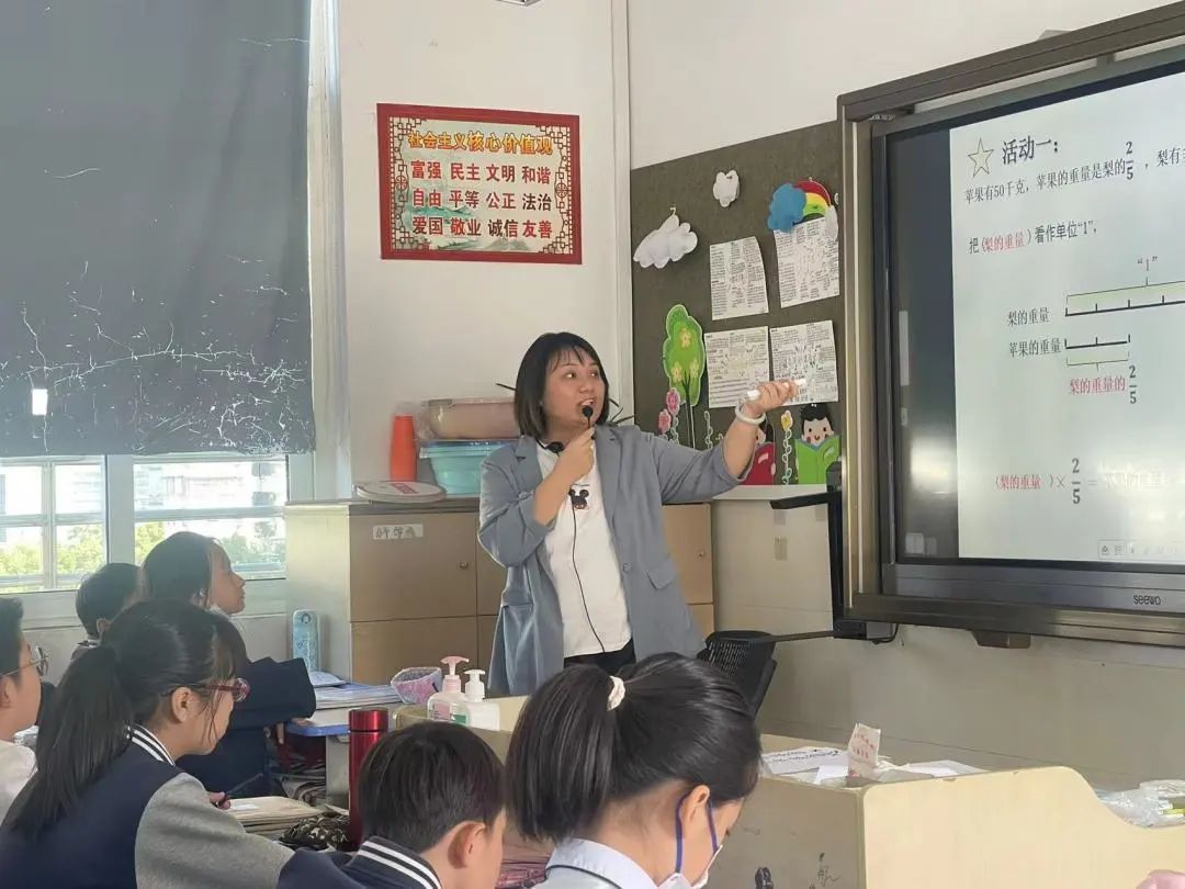 叶佳佳老师在六(3)班为我们带来一节六年级上册数学课《分数除法解决问题》。课堂中,叶老师十分注重作图的规范化与思维拓展。通过展示学生优秀的和具有典型错误的作品,引导学生规范作图,以直观而清晰的线段理解题目和解决题目。同时,叶老师创设的问题里还经常性追问“你还有什么想法”等,以自然的语调精炼且巧妙地打开学生的拓展性思维,培养了教师与学生的默契度,课堂效率显著。