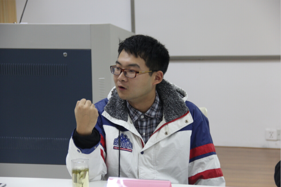 在抓机遇方面,“忙碌”是陈毅翔同学的关键词。他用在团学组织工作的经验告诉在座的学生骨干,在团学组织中的工作虽然忙碌,但是可以从中锻炼很多能力,这是一个展示自我、挖掘潜力的平台,在其它更加优秀的人身上学到很多为自己所用,这是把握在学生会学习机会的表现。“参加挑战杯是运气。”陈毅翔同学谦虚地说。其实,在座的同学都明白,在运气的背后,陈同学抓住的是机遇,并且在团队活动中,乐于比赛,享受比赛。团队作战,不仅是个人能得到提高,而且团队合作中队员间的关系也会变得更加融洽。