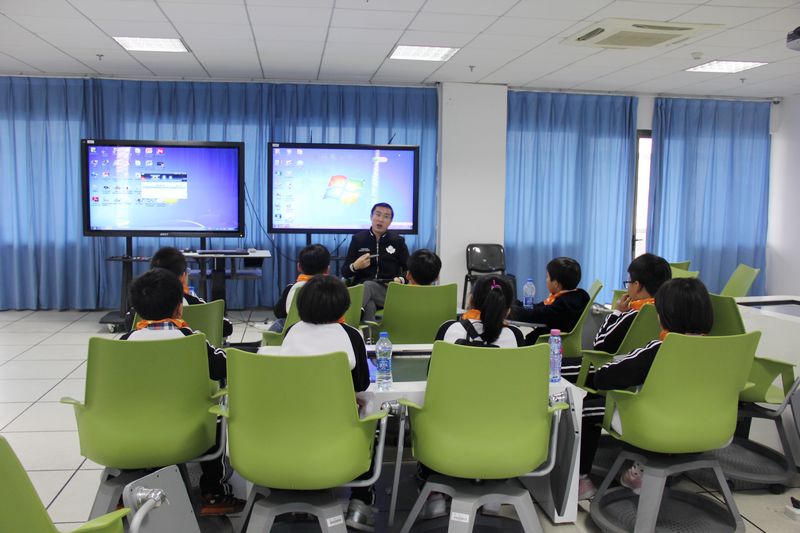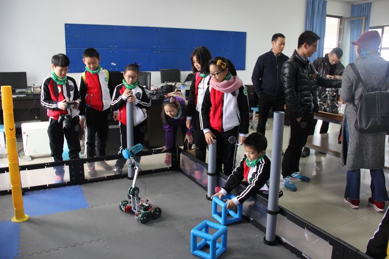 在实验室里,小学生们认真听取各实验室负责老师的讲解,孩子们还不时提出疑问,提出的问题指导老师都耐心讲解着,并且带领小学生逐一体验了各个实验室的教具,在自然科学室里,他们观察显微镜下的神奇世界;机器人实验室里,他们体验了智能机器人夹取、移动、投篮等运作全过程;在未来课堂实验室,他们体验了先进的教学媒体在教学中的应用,整个上午气氛十分愉快,教室里回荡着阵阵笑声,直到中午11点30分小学生们才离开,临走前家长们纷纷表示不虚此行,短暂的两个半小时,孩子们不仅亲密接触了仪器设备,而且收获了体验的快乐,学习的乐趣,锻炼了实践操作能力,丰富了课外生活。